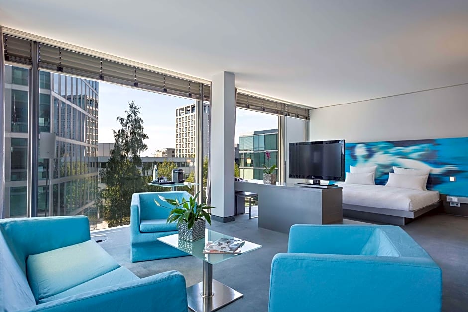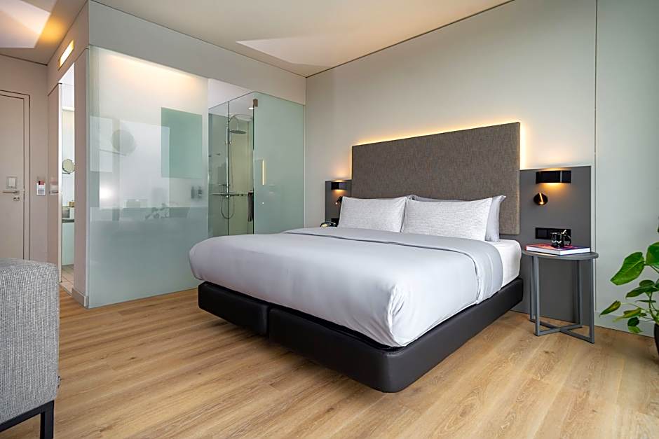 Contemporary studio with a flat-screen TV. The private bathroom offers a rain shower and a hairdryer.